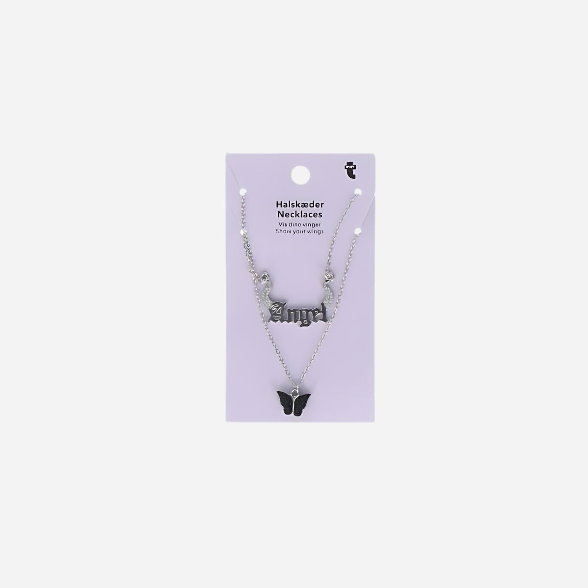 Gotik Temalı 2'li Kolye, cesur ve romantik bir dokunuş sunan iki farklı tasarımla şıklığınızı tamamlar. Setin bir parçası, zarif gotik yazı stilinde tasarlanmış “angel” kelimesi kolye ucuna sahipken, diğeri minimal ve koyu esintili bir detayla tamamlanmıştır. Metalden üretilmiş bu kolyeler, hafif yapıları sayesinde rahat bir kullanım sunarken, aynı zamanda güçlü bir stil ifadesi yaratır.
