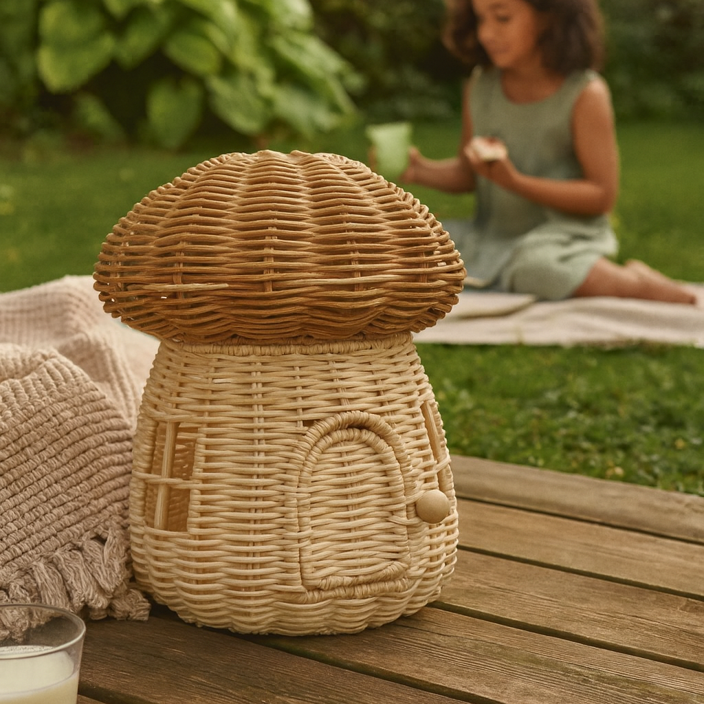 Orta boyutları sayesinde taşıması kolaydır ve sapı rahat bir kavrama imkanı sağlar. İster sahilde, ister parkta, ister bahçede kullanın, bu sepet hem işlevselliği hem de görsel cazibesiyle öne çıkar. İçine atıştırmalıklarınızı, soğuk içeceklerinizi veya piknik aksesuarlarını yerleştirdiğinizde, eğlenceli formuyla sofranıza rustik ve doğadan ilham alan bir hava katar. Günlük kullanımda da dekoratif bir saklama çözümü olarak kullanılabilecek Mantar Ev Şeklinde Hasır Piknik Sepeti, hem pratik hem de göz alıcı bir seçimdir.