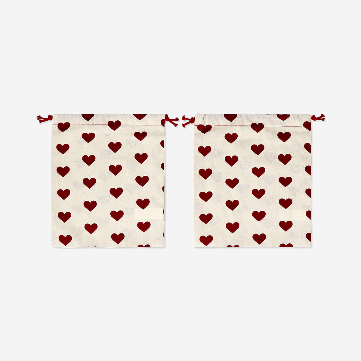 2'li Kırmızı Kalpli Kumaş Hediye Çantası, hediyelerinizi zarif ve düşünceli bir şekilde sunmak için tasarlanmış romantik bir settir. Pamuklu kumaştan üretilen bu iki ipli çanta, kırmızı zemin üzerine işlenmiş kalp desenleriyle sıcak bir görünüm sunar. Her biri 0,5 x 24 x 20 cm boyutlarında olan çantalar, küçük hediyeler, ikramlar veya hatıraları paketlemek için mükemmeldir. İpli kapatma sistemi, hem güvenli bir muhafaza sağlar hem de el yapımı bir estetik kazandırır.