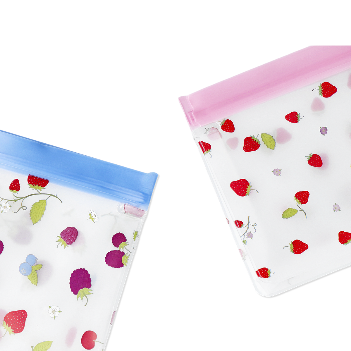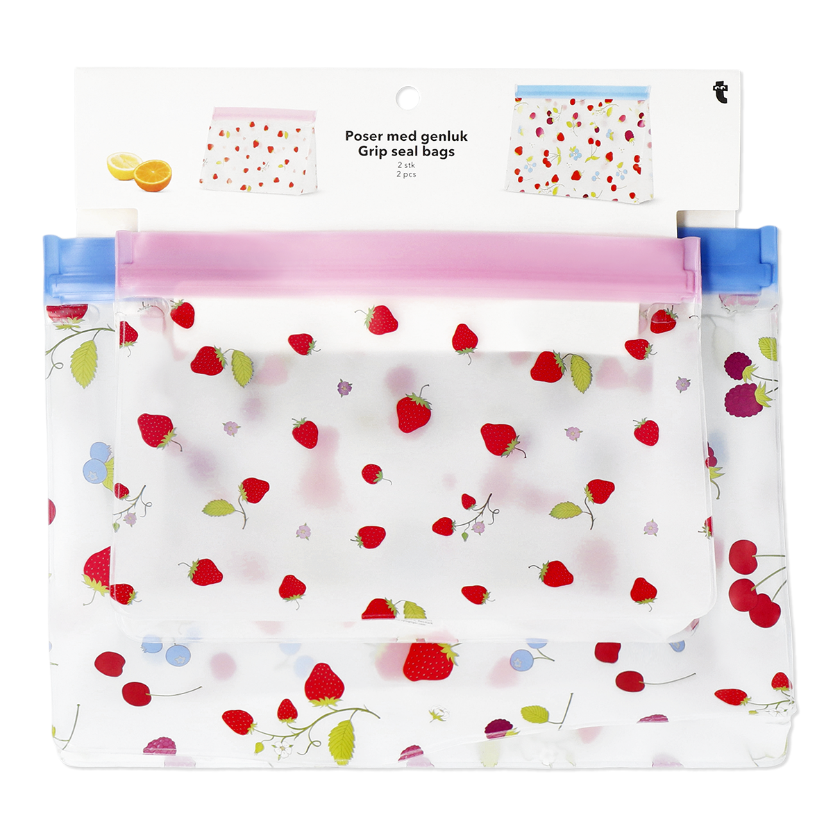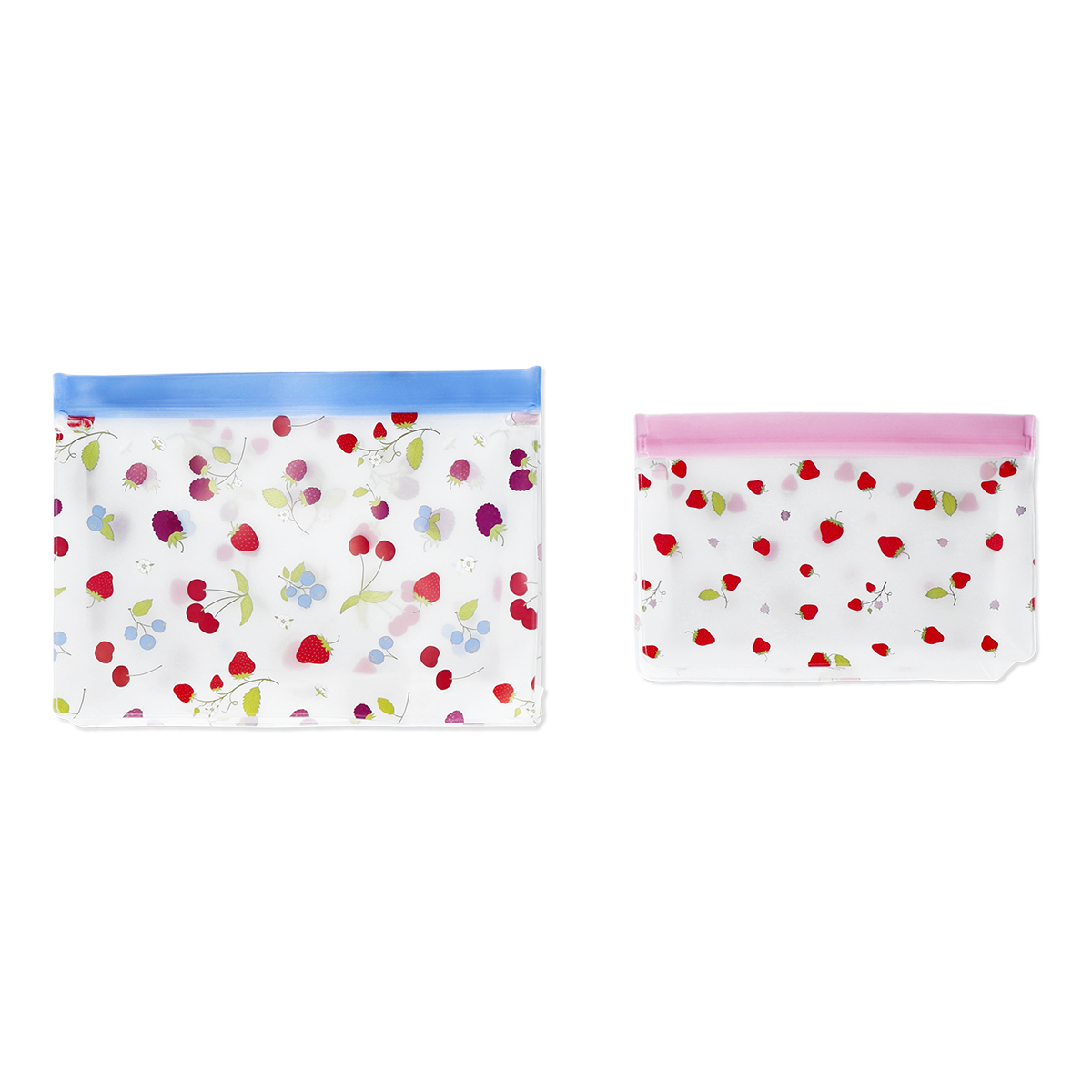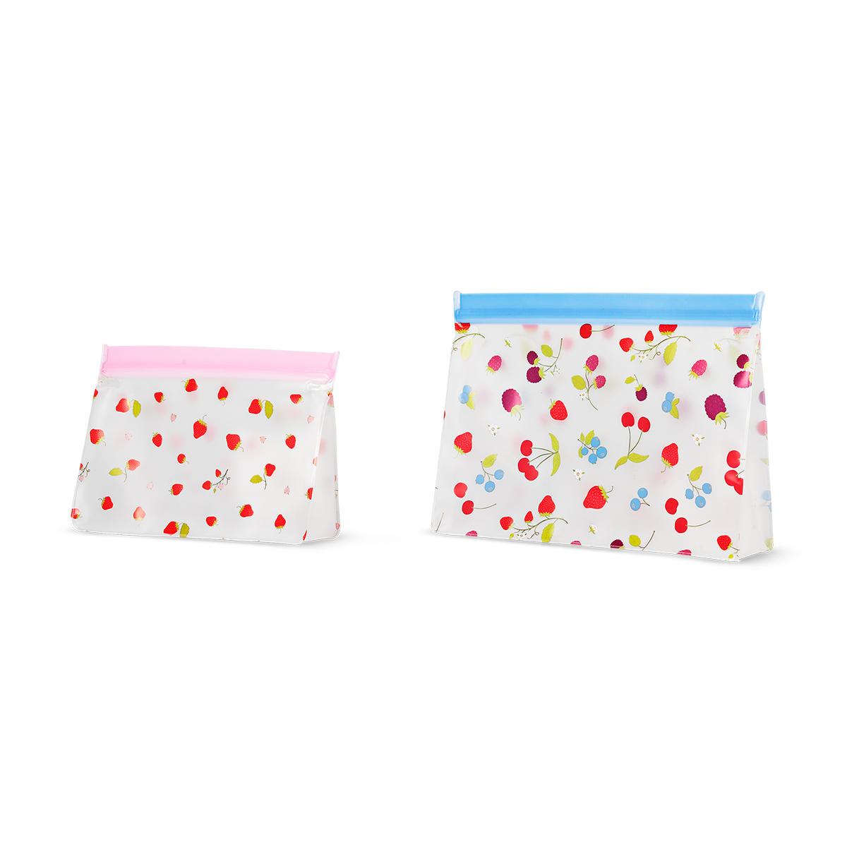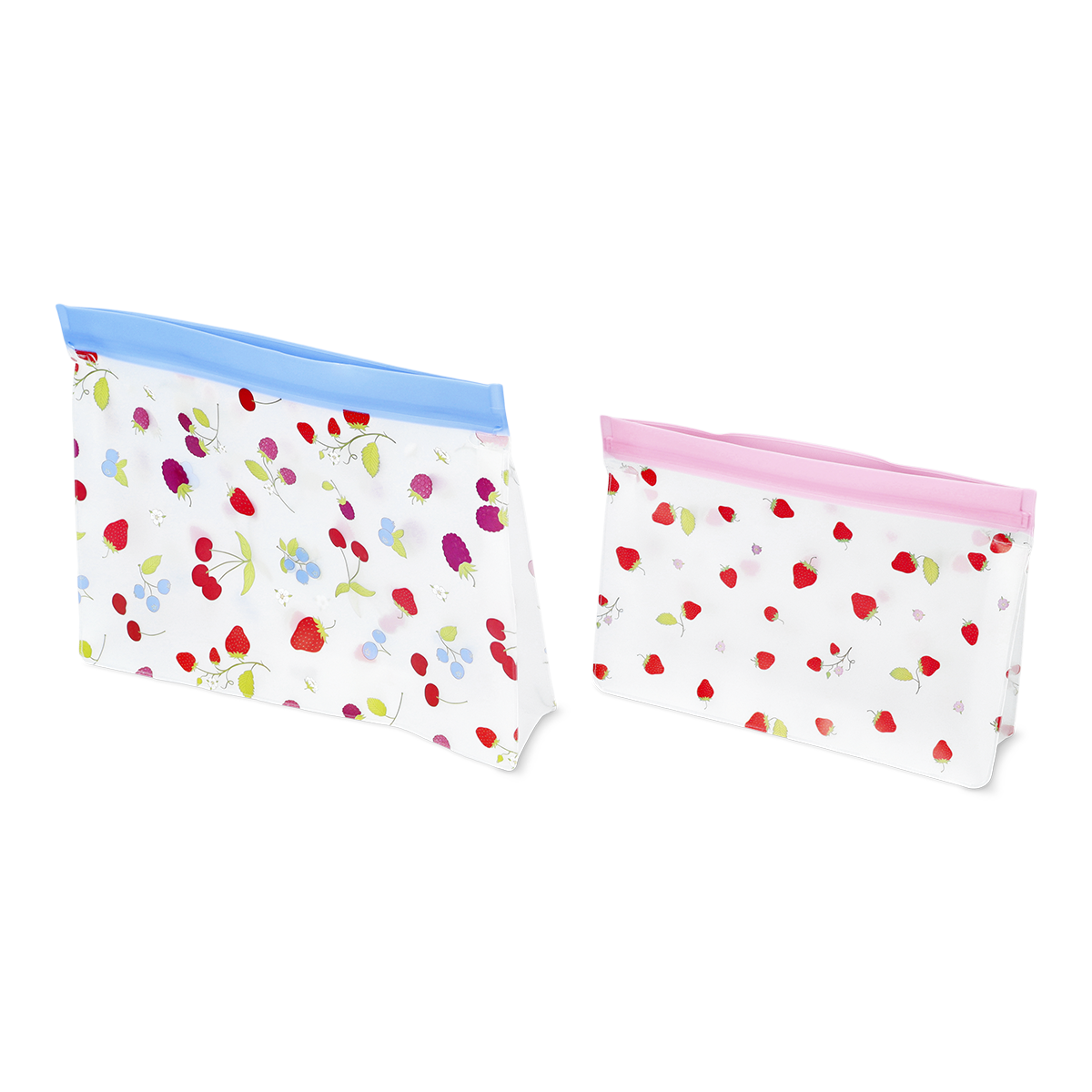 2'li Meyve Desenli Kilitli Poşet, yiyeceklerinizi taze ve düzenli tutmak için şık ve pratik bir çözüm sunar. Çilek desenli bu poşetler, gıda ile temasa uygun plastikten üretilmiştir ve iki farklı boyutta gelir. Büyük poşet 25,5 x 19 cm, küçük poşet ise 20,5 x 14,5 cm boyutlarındadır. Her iki poşet de atıştırmalıklar, meyveler veya artan yemekleri saklamak için çok yönlü bir kullanım sunar.