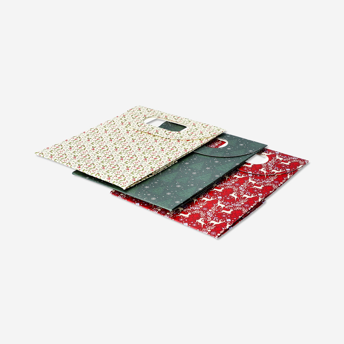 3'lü Küçük Desenli Hediye Çantası, yeni yıl hazırlıklarınıza pratiklik ve zarafet kazandırır. Katlanabilir kapaklar, içindekileri güvenli bir şekilde saklarken, kompakt boyutu onları hem taşımayı hem de saklamayı kolaylaştırır. Her bir çanta, küçük ama anlamlı hediyeleri sevdiklerinize sunmanın şık bir yoludur. Şenlikli desenleriyle bayram ruhunu yansıtır ve her hediye alışverişine özenli bir dokunuş ekler. Mevsimsel kutlamalar için hem görsel açıdan çekici hem de kullanışlı bir seçimdir.