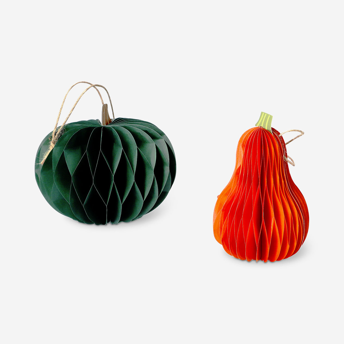 Balkabağı Şeklinde 2'li Küçük Kağıt Süs, sonbahar ve Halloween dekorasyonlarınıza sevimli ve şenlikli bir enerji katar. Kontrast renk ve formlarda tasarlanan iki parçalık bu set, dekorasyonlarınıza çeşitlilik ve görsel zenginlik ekler. Her biri 7,2 x 11,8 cm ölçülerinde olan süsler, hafif yapıları ve katlanabilir petek tasarımları sayesinde kolayca asılıp sergilenebilir.