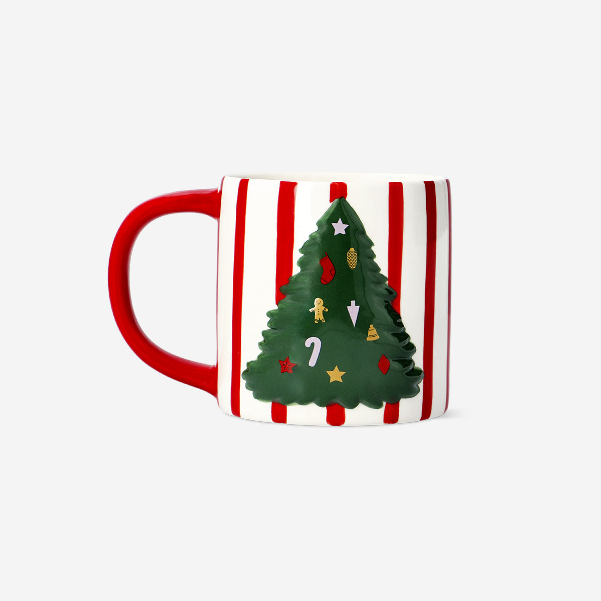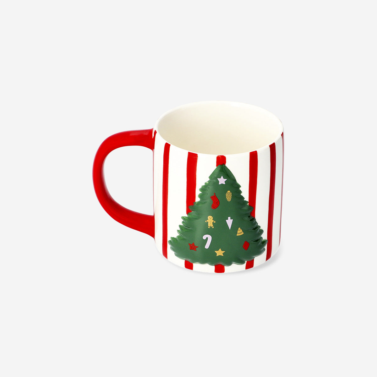 Çam Ağacı Desenli Seramik Kupa 400 ml, tatil sezonuna renk ve canlılık katmak için özel olarak tasarlanmıştır. Kırmızı çizgilerle hareketlendirilmiş çok renkli seramik gövdesi ve kabartmalı çam ağacı detayı, her yudumda şenlikli bir atmosfer yaratır. 13,6 x 9,2 x 9,7 cm ölçülerinde ve 400 ml kapasitesiyle, sıcak çikolata, kahve veya kış aylarının vazgeçilmez içecekleri için ideal boyuttadır. Gıda kullanımına uygun yapısı sayesinde hem pratik hem de güvenli bir seçenektir.