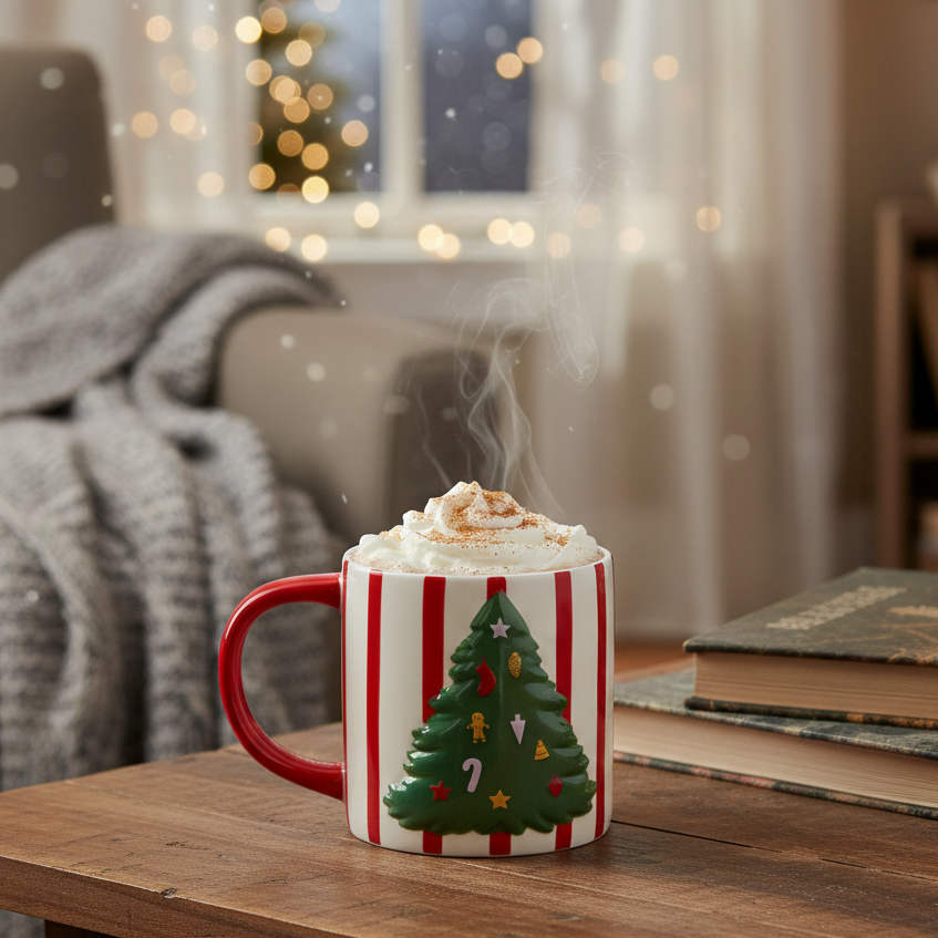 Günlük kullanım için yeterince işlevsel olan Çam Ağacı Desenli Seramik Kupa 400 ml, aynı zamanda tatil toplantıları, aile buluşmaları veya özel kış akşamlarında sofranıza dekoratif bir katkı sağlar. Tatil koleksiyonlarının olmazsa olmaz parçalarından biri olarak, ister kendi keyfiniz için ister sevdiklerinize hediye etmek için harika bir seçimdir. Şık tasarımı ve mevsimsel havasıyla, yeni yıl ruhunu mutfağınıza taşıyan keyifli bir detay sunar.