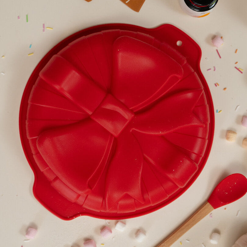Fiyonk Şeklinde Silikon Kek Kalıbı, kırmızı fiyonklu tasarımıyla pişirme deneyiminize sevimli ve eğlenceli bir dokunuş katar. Güzelce bağlanmış kurdele formu sayesinde kutlamalar, yılbaşı sofraları veya özel günlerde göz alıcı kekler hazırlamanızı sağlar. Yüksek kaliteli, esnek silikon malzemesi sayesinde keklerinizi kalıptan kolayca çıkarabilir ve pürüzsüz sonuçlar elde edebilirsiniz. Hem profesyonel hem de ev tipi kullanımlar için zarif ve pratik bir seçenektir.