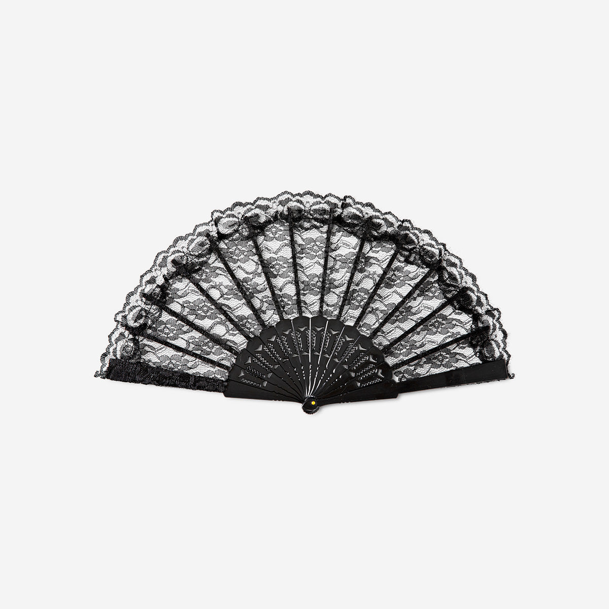 Gotik Temalı Siyah Yelpaze, dramatik bir dokunuşla görünümünüze teatral bir hava katan şık bir aksesuardır. Siyah renkteki bu katlanabilir yelpaze, narin dantelin zarafetini plastik çerçevenin sağlamlığıyla birleştirir. Açıldığında 45 x 24 cm boyutlarında geniş ve dikkat çekici bir siluet oluştururken, katlandığında kompakt boyutları sayesinde kolayca taşınabilir ve hafifliği ile kullanım konforu sağlar.