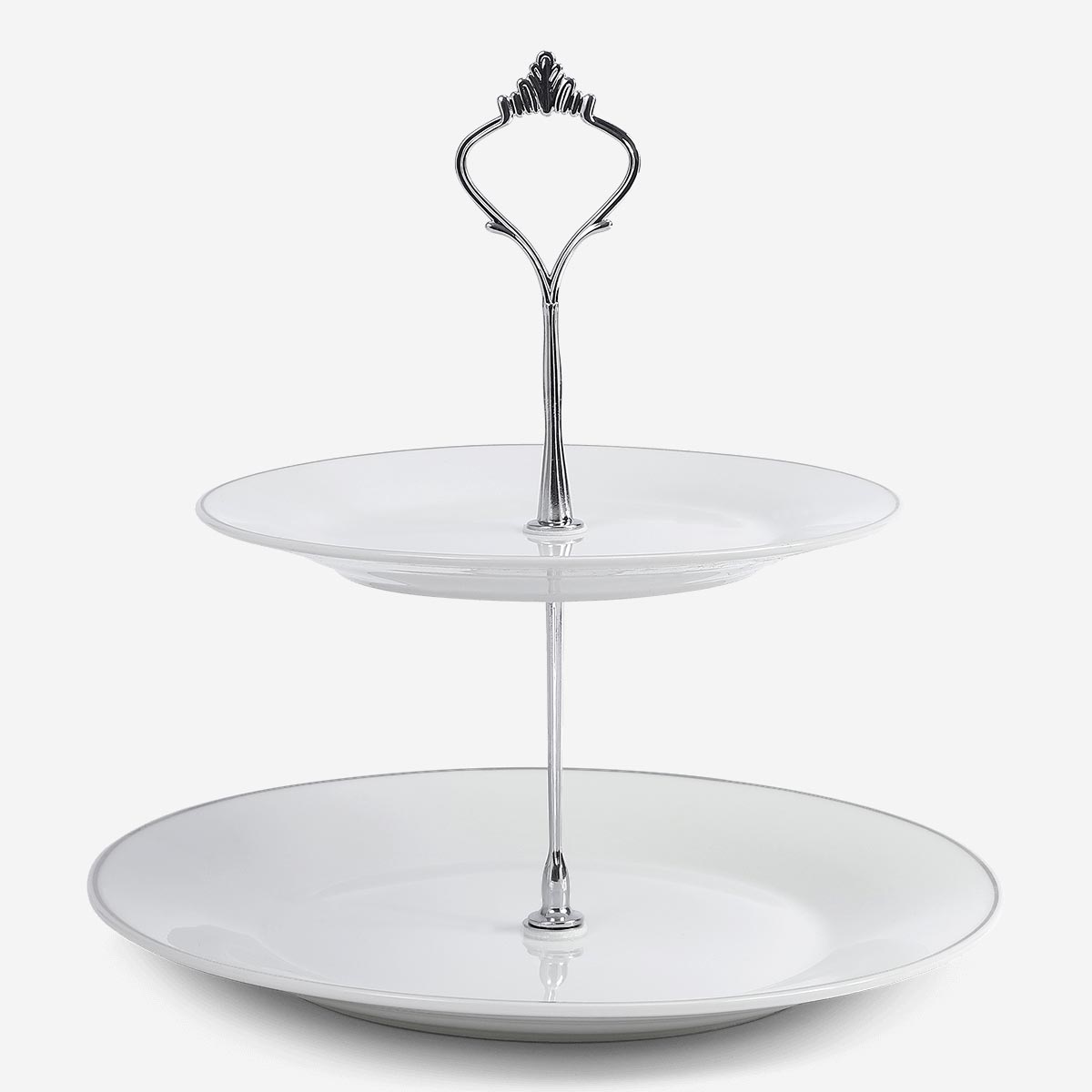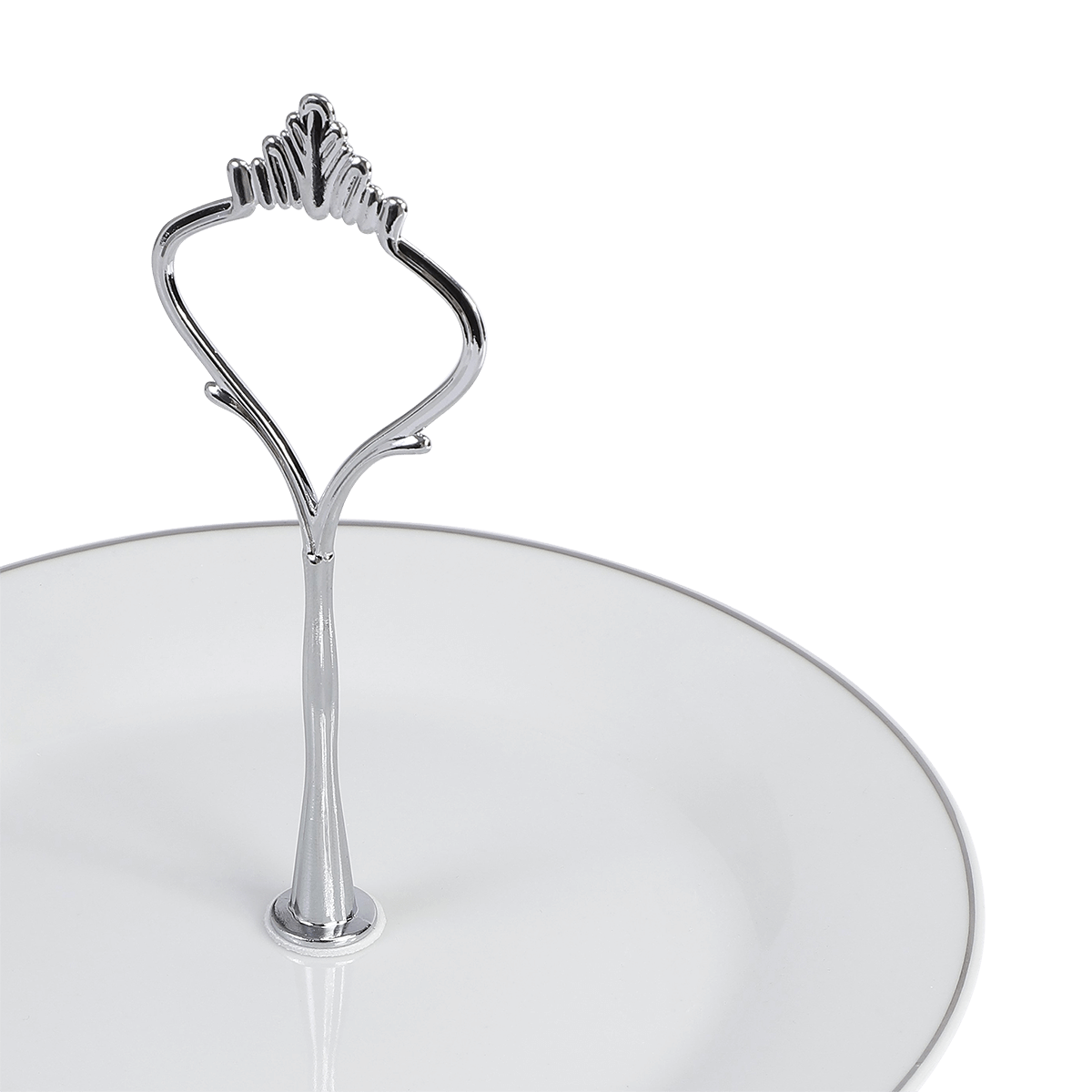 Gümüş Detaylı 2 Katlı Servislik, özel etkinlikler, kutlamalar veya günlük kullanımlar için mükemmeldir. Altın detaylar, her tür sofrada zarif bir atmosfer yaratırken, kullanımı kolay tasarımı ile ikramlarınızı etkili bir şekilde sunmanıza olanak tanır. Bu zarif ürün, sofralarınıza şıklık katmak ve misafirlerinize görsel bir şölen sunmak için ideal bir tercihtir.