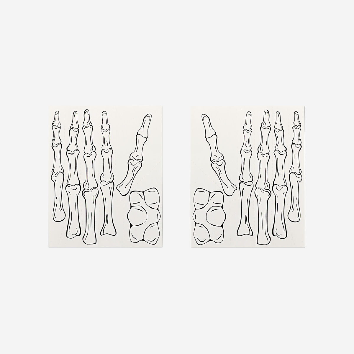 İskelet Desenli 2'li Geçici Dövme, Halloween görünümlerinize ürkütücü ama eğlenceli bir detay eklemek için tasarlanmıştır. Yetişkinler için hazırlanan bu set, sol ve sağ el için özel olarak uyumlu iki parçadan oluşur ve kemikli el görünümünü gerçekçi şekilde taklit eden net beyaz iskelet baskısına sahiptir. 12,7 x 15 x 0,1 cm boyutlarındaki dövmeler, kolay uygulanabilen ve pratik şekilde çıkarılabilen yapısıyla hızlı kostüm tamamlamaları için mükemmeldir.