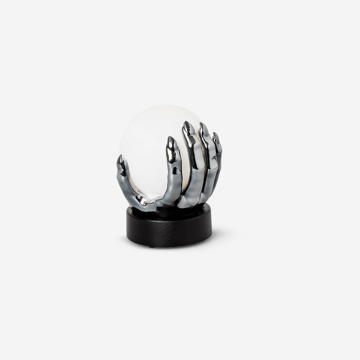 Parıldayan kristal küre, gizemli bir atmosfer yaratırken pençeli el detayı dekorasyona korkutucu bir güç katar. 3 adet AAA pil ile çalışan Işıklı Kristal küre, pil değişimi kolay olacak şekilde tasarlanmıştır (piller ürüne dahil değildir). Karanlık toplantılar, temalı partiler veya yalnızca evinizin dekoruna ürkütücü bir vurgu eklemek için ideal bir seçimdir. Bu mistik aksesuar, hem dikkat çekici hem de unutulmaz bir merkez süsü olarak öne çıkar.