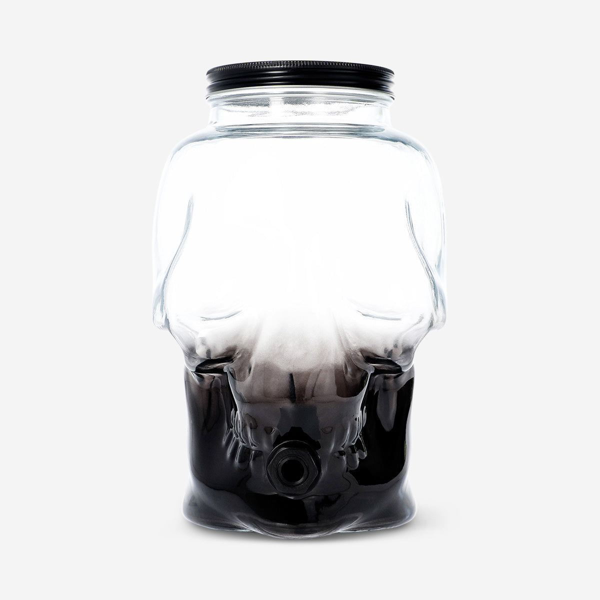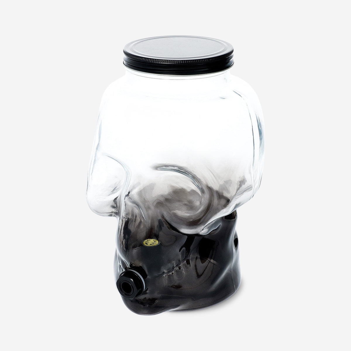 Kafatası Şeklinde Siyah İçecek Kavanozu 3,4 L, içeceklerinizi sunarken masanıza ya da parti düzenlemenize gotik bir cazibe katmak için tasarlanmıştır. Gıda güvenliği sertifikalı camdan üretilmiş olan bu siyah kavanoz, 3,4 litre kapasitesiyle kalabalık kutlamalarda içecek servisini kolaylaştırır. Üst kısmındaki sağlam metal kapağı sıvıları güvenle muhafaza ederken, kafatası silueti özellikle Cadılar Bayramı ya da karanlık temalı etkinliklere ürkütücü bir şıklık katar.