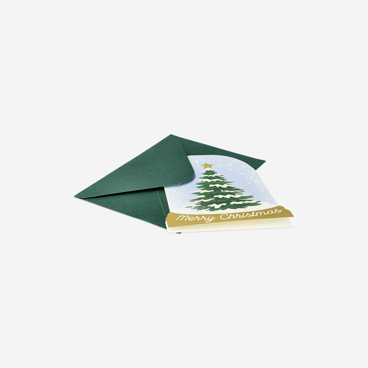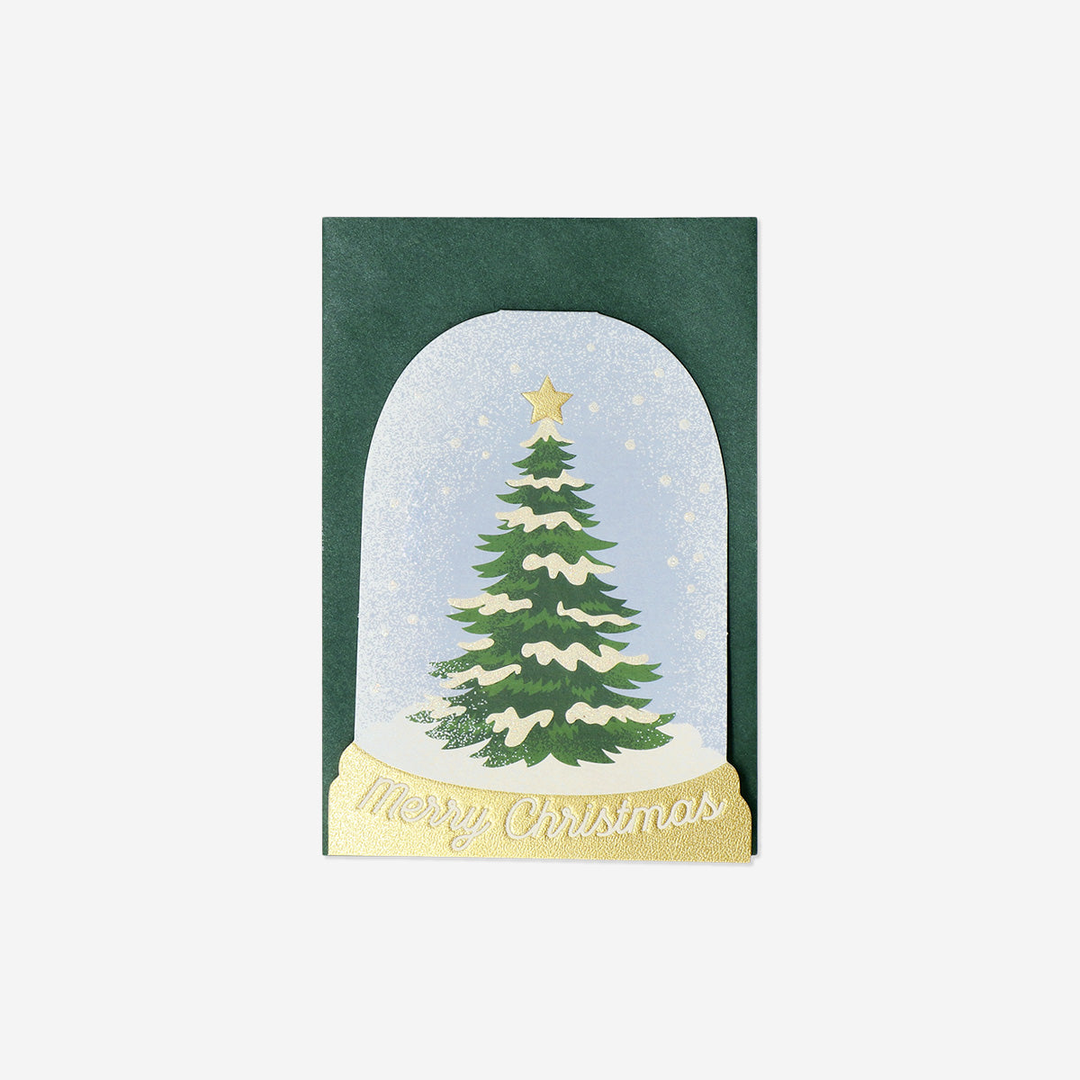 Kar Küresi Desenli Yılbaşı Tebrik Kartı, Noel ruhunu büyüleyici bir şekilde yansıtmak için tasarlanmış zarif bir karttır. Altın bir yıldızın altında parıldayan Noel ağacı ve karlı arka planıyla klasik bir kar küresi görünümüne sahiptir. Işıltılı detaylarıyla şenlikli bir hava katan bu tasarım, bayram mesajlarınıza sıcaklık ve neşe katmak için mükemmel bir seçimdir.