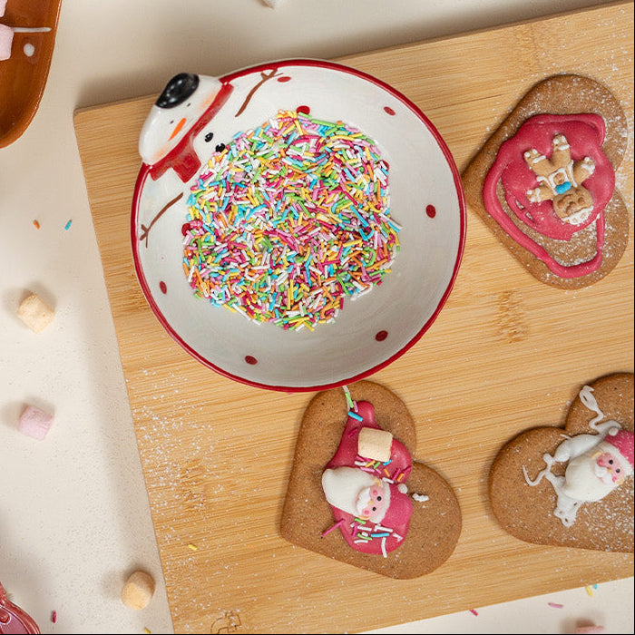 Kardan Adam Şekilli Kase, 15 x 7 x 13,7 cm boyutlarındadır ve seramikten yapılmıştır. Kırmızı noktalarla süslenmiş sevimli bir kardan adam yüzü tasarımına sahiptir ve yılbaşı için mükemmel bir hediye seçeneğidir.