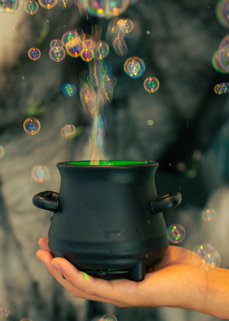 Kazan Şeklinde Baloncuk Makinesi, Halloween kutlamalarına sihirli bir dokunuş katmak için mükemmel bir seçimdir. Siyah renkte metal malzemeden üretilmiş ve köpüren cadı kazanını andıran tasarımıyla, hem dekoratif hem de eğlenceli bir işlev sunar. 14,3 cm genişliğinde, 11,5 cm yüksekliğinde ve 11,7 cm derinliğinde olan bu kompakt makine, sabun köpüğü, ışık ve duman efektlerini bir araya getirerek büyüleyici bir duyusal deneyim yaratır.