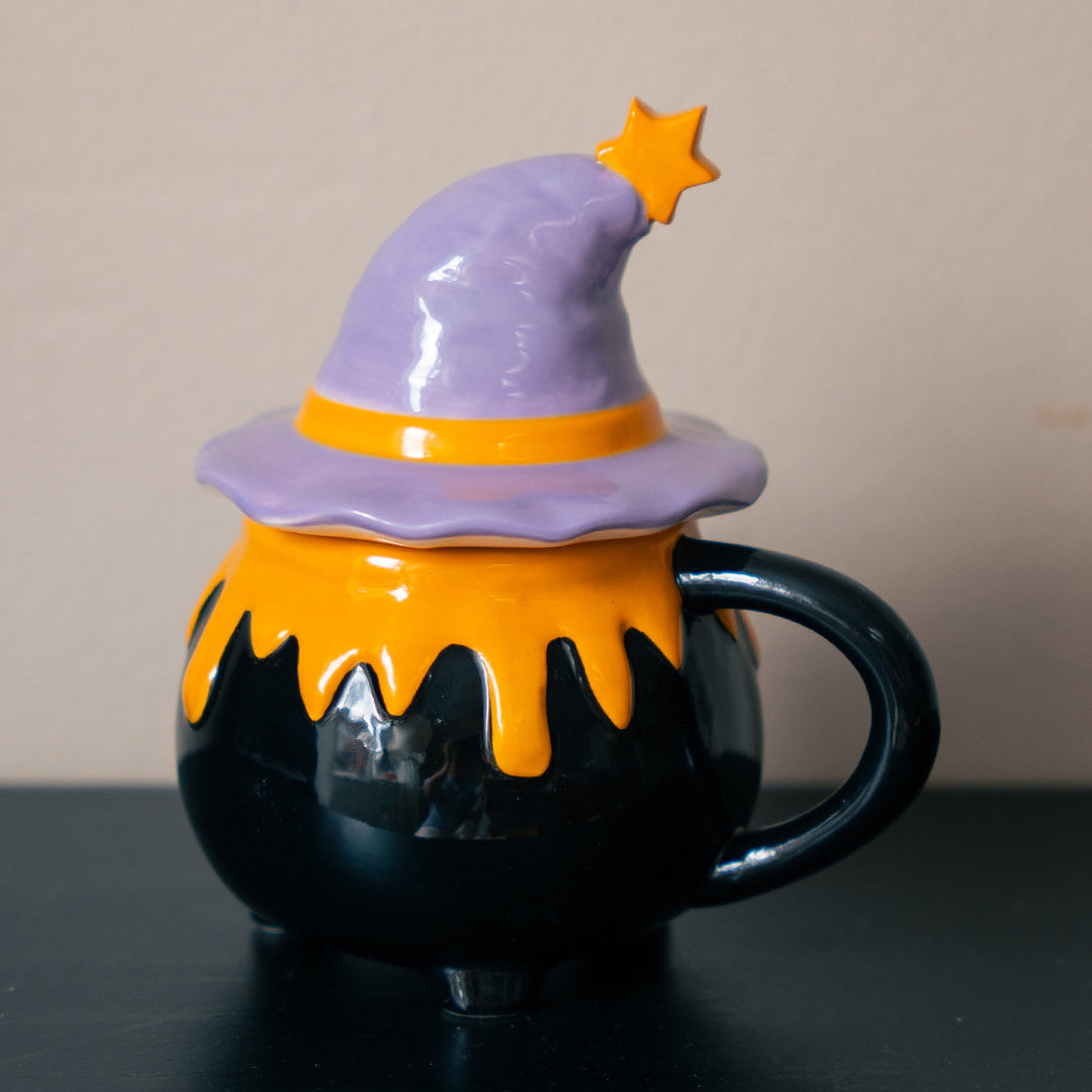 Kazan Şeklinde Porselen Kupa, Cadılar Bayramı ruhunu yudumlarınıza taşımak için tasarlanmış şirin ve temalı bir parçadır. Kazan formundaki siyah gövdesi ve cadı şapkası şeklindeki mor-sarı kapak detayıyla hem işlevsel hem de dekoratif bir görünüm sunar. 14,5 x 16 x 10,8 cm boyutları ve 400 ml kapasitesi sayesinde kahve, çay veya sıcak çikolata gibi favori içecekleriniz için idealdir.