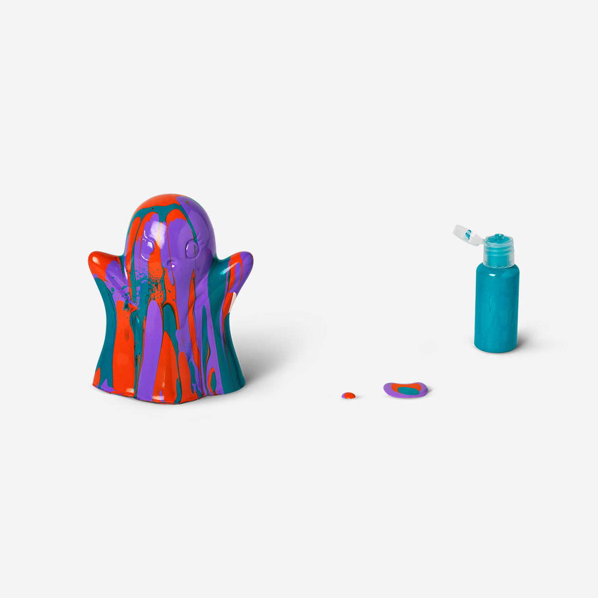 Kendin Yap Hayalet Boyama Seti, Halloween dekorasyonlarınıza kişisel ve eğlenceli bir renk katmanın yaratıcı bir yolunu sunar. Pürüzsüz yüzeye sahip yaklaşık 10,8 x 12,2 x 8 cm boyutlarındaki hayalet figürü, dökme boyama tekniği için mükemmel bir tuval görevi görür. Setin içinde bulunan canlı renklerdeki dört şişe boya, katmanlar halinde döküldüğünde benzersiz kıvrımlar ve desenler oluşturarak her figürü tek ve özel kılar.