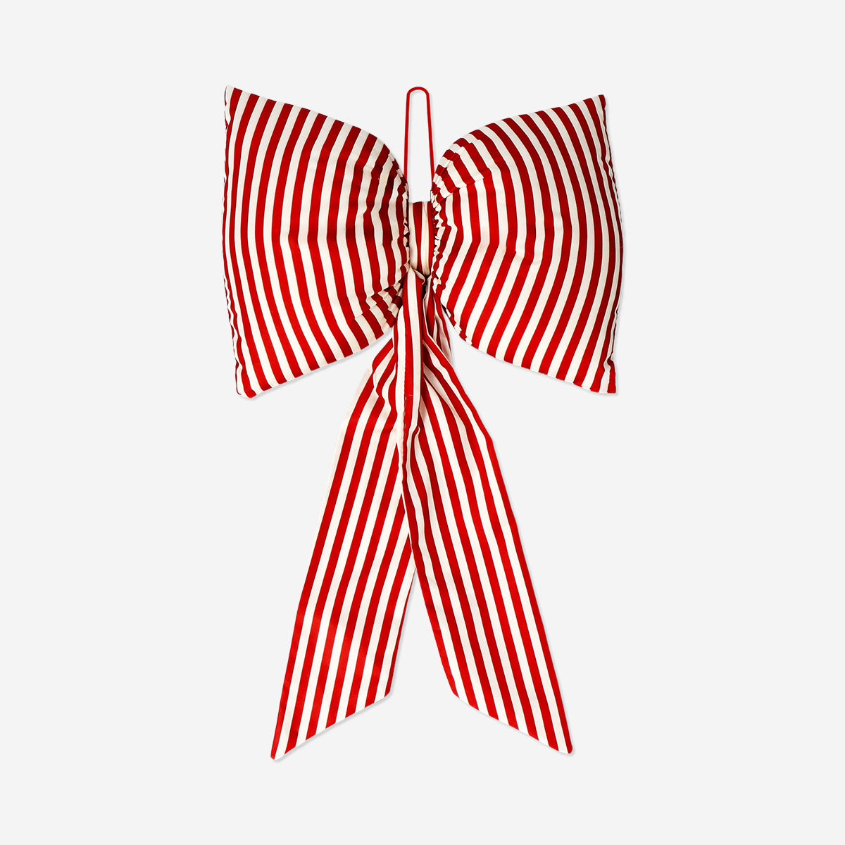 Kırmızı Beyaz Çizgili Dekoratif Fiyonk, mevsimsel dekorasyonlarınıza klasik bir Yılbaşı cazibesi katar. Parlak kırmızı ve beyaz çizgili deseniyle öne çıkan bu büyük fiyonk, neşeli ve davetkar bir görünüm yaratır. 7 x 47 x 27 cm boyutlarındaki tasarım, polyester malzemeden üretilmiştir ve dolgun bir forma sahiptir, böylece her açıdan hacimli ve dikkat çekici durur. Arka kısmındaki halka sayesinde kapılara, merdiven korkuluklarına, duvarlara veya büyük hediye paketlerine kolayca asılabilir.