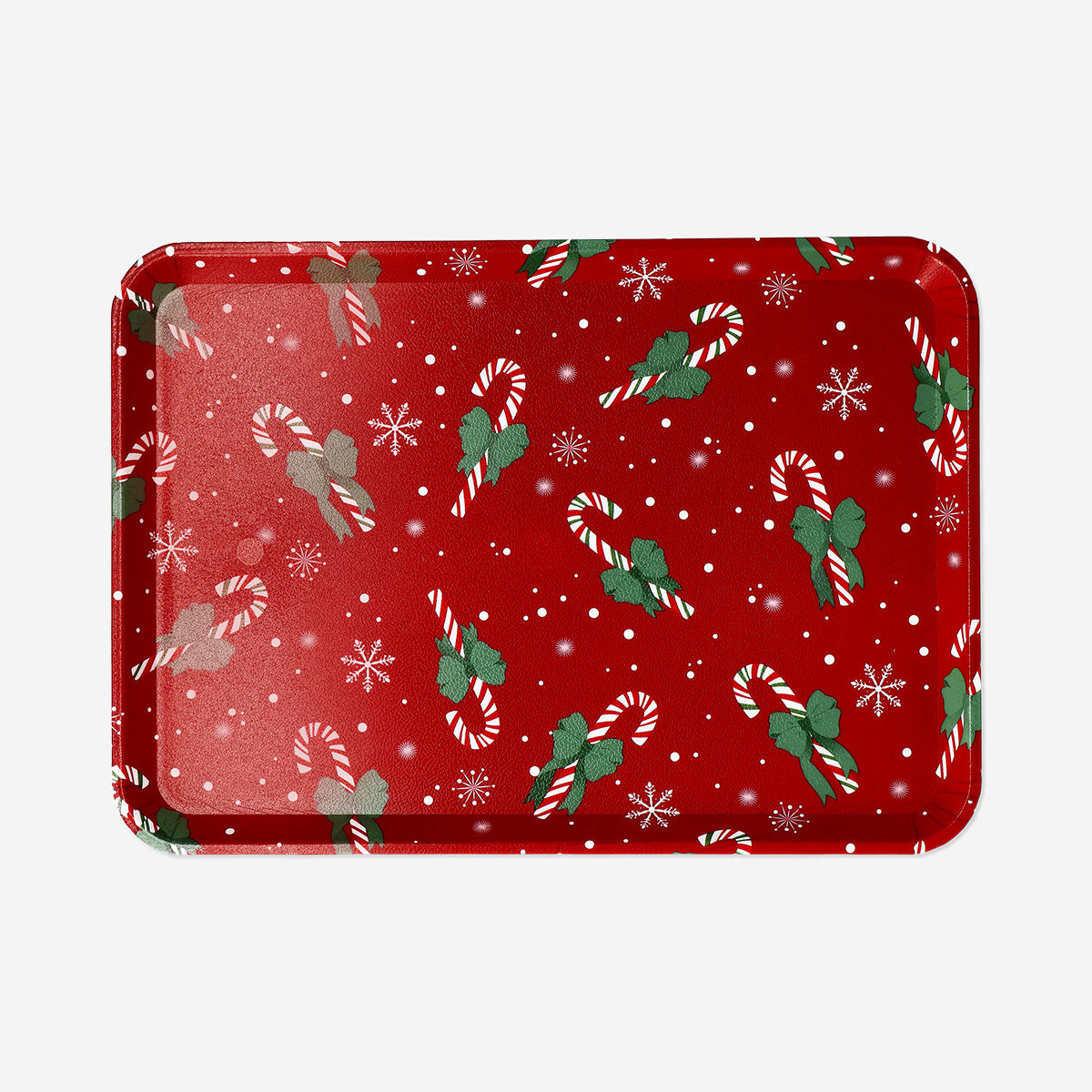 Dayanıklı malzemeden üretilen bu tepsi, hafif yapısı sayesinde kolay taşınabilir ve temizlik açısından pratiktir. Kenar kısımlarındaki hafif kıvrımlar, taşıma sırasında güvenli bir tutuş sağlar. Yılbaşı süslemeleriyle uyumlu zarif tasarımı sayesinde hem işlevsel hem de dekoratif bir aksesuar olarak öne çıkar. Misafirlerinize tatlı bir sunum yapmak veya evinizde sıcak bir atmosfer yaratmak için mükemmel bir seçimdir.