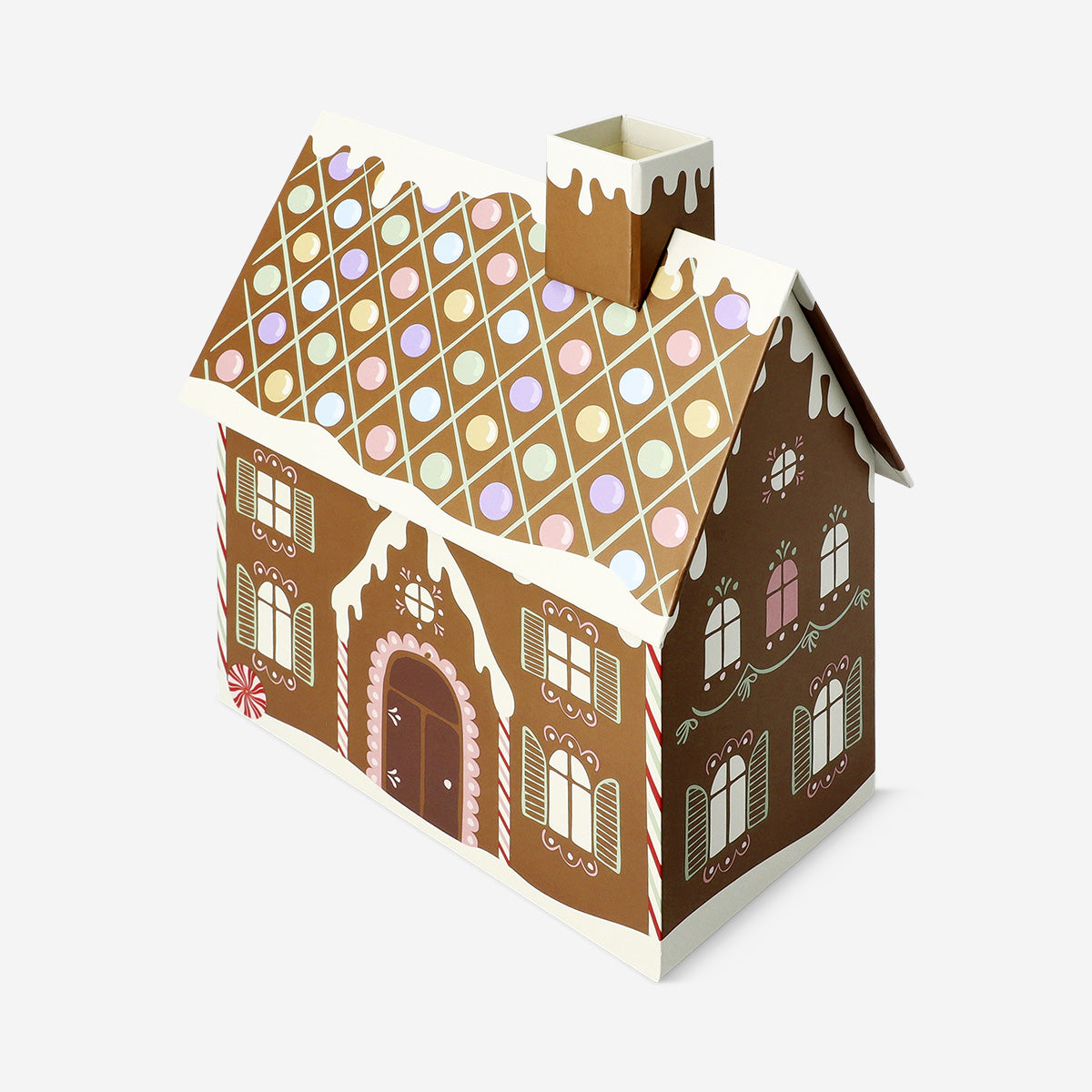 Kurabiye Ev Şeklinde Hediye Kutusu, yılbaşı ruhunu en tatlı haliyle yansıtan büyüleyici bir hediye sunumudur. Zencefilli kurabiye ev şeklinde tasarlanan bu kutu, renkli şeker süsleri, buzlanmış çatı detayları ve kahverengi gövdesiyle klasik bir tatil pastanesinden çıkmış gibi görünür. Kağıttan üretilen ve 12 cm genişliğinde, 22 cm yüksekliğinde, 19,3 cm derinliğinde olan bu kutu, küçük hediyeler, kurabiyeler veya mevsimsel ikramlar için mükemmel boyuttadır.