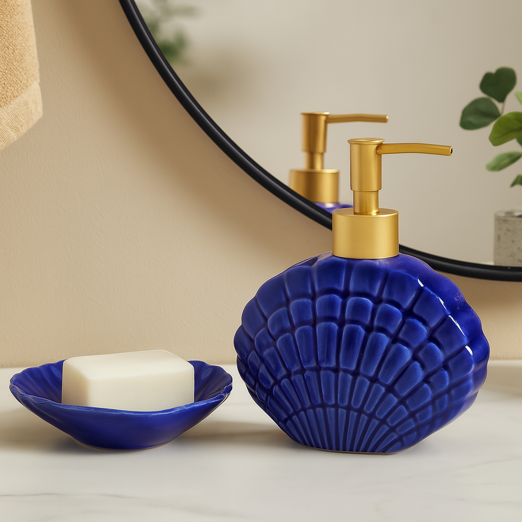 Deniz veya plaj temalı iç mekanlar için mükemmel olan Mavi Deniz Kabuğu Şeklinde Sabunluk, her lavabo veya tezgaha şıklık katarken evinize doğal bir hava getirir. Günlük kullanımda pratikliği ile öne çıkan bu sabunluk, dekoratif bir düzenlemenin parçası olarak da kullanılabilir, işlevselliği ve şık tasarımı birleştirerek evinizin vazgeçilmez bir aksesuarı olur.