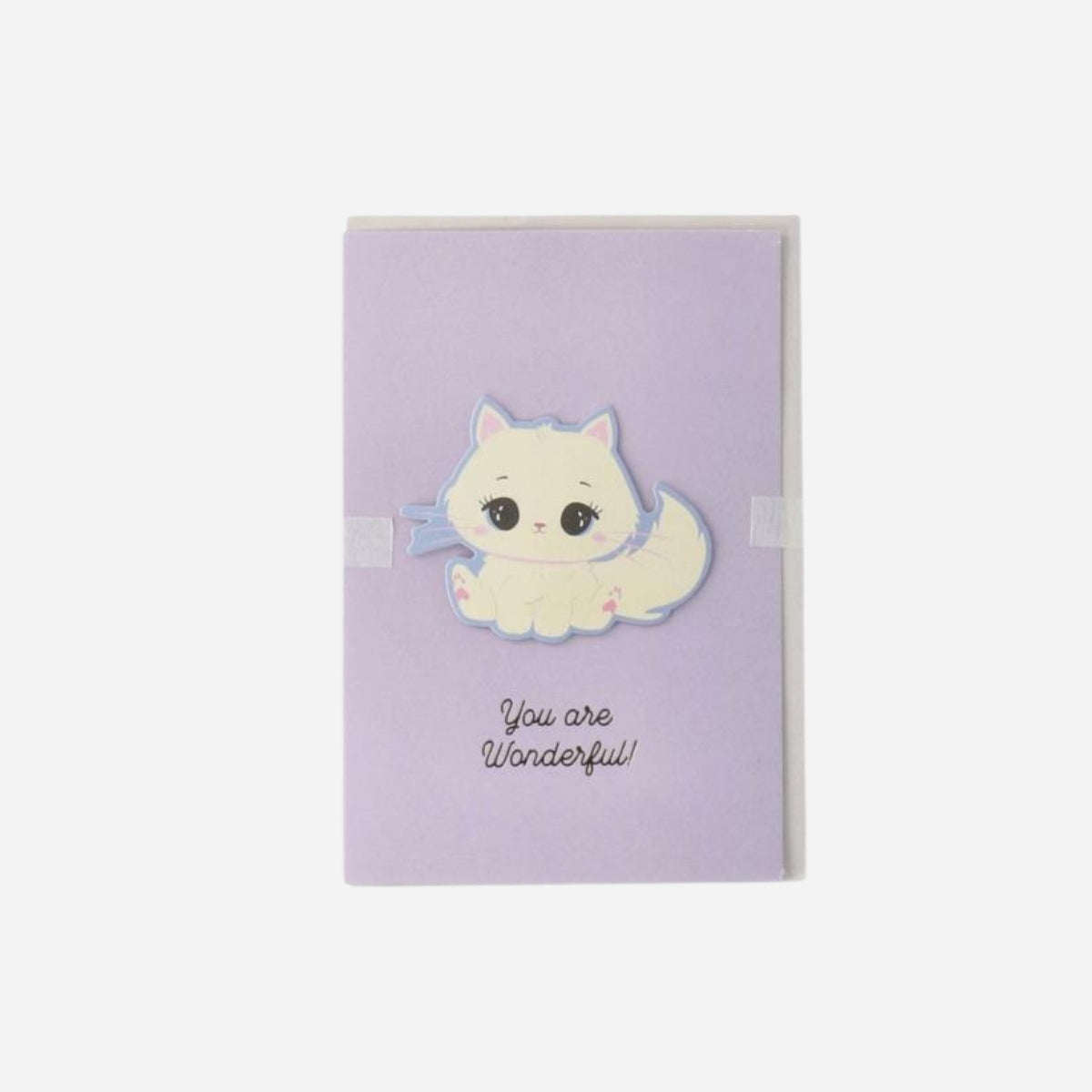 Dayanıklı kâğıttan üretilen Mor Kedi Desenli Tebrik Kartı, uyumlu bir zarf ile birlikte gelir ve zarif bir şekilde sunum yapmanızı kolaylaştırır. İç kısmı boş bırakılarak kişisel mesajlarınıza geniş bir alan sunar. Hediye paketine eklemek ya da tek başına vermek için ideal olan bu kart, kedi severler için keyifli bir hatıra niteliği taşır.