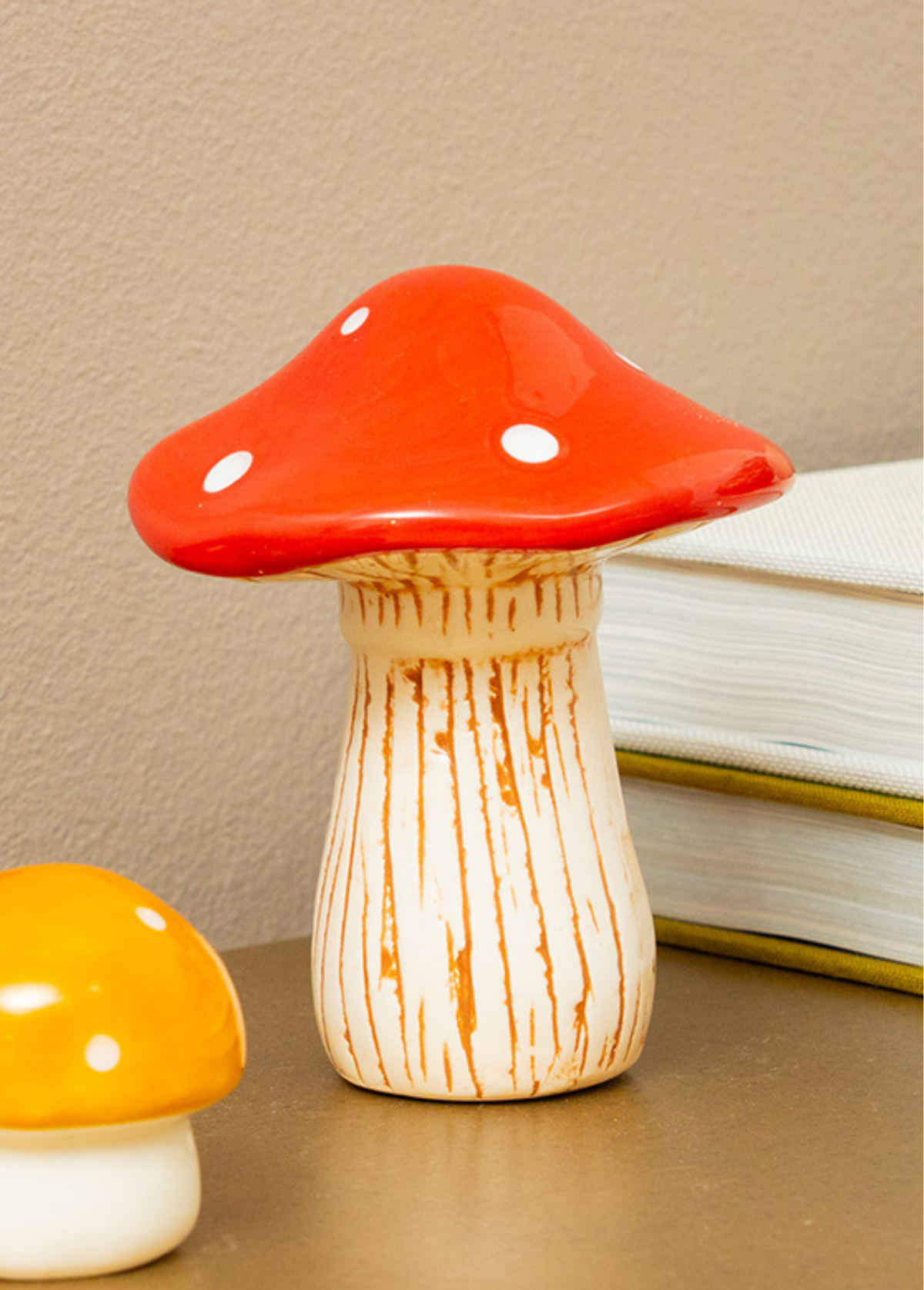 Tek başına kullanıldığında minimal bir vurgu yaratırken, diğer mantar biblolar veya doğadan ilham alan dekoratif öğelerle birlikte kombinlendiğinde şık bir koleksiyon etkisi sağlar. Mevsimlik süslemelerden rustik dekorlara kadar geniş bir yelpazeye uyum gösterir. Samimi ve eğlenceli bir hava katmak isteyenler için, Orta Seramik Kırmızı Mantar Biblo yaşam alanlarınıza doğallık ve sevimlilik taşıyan şık bir detaydır.