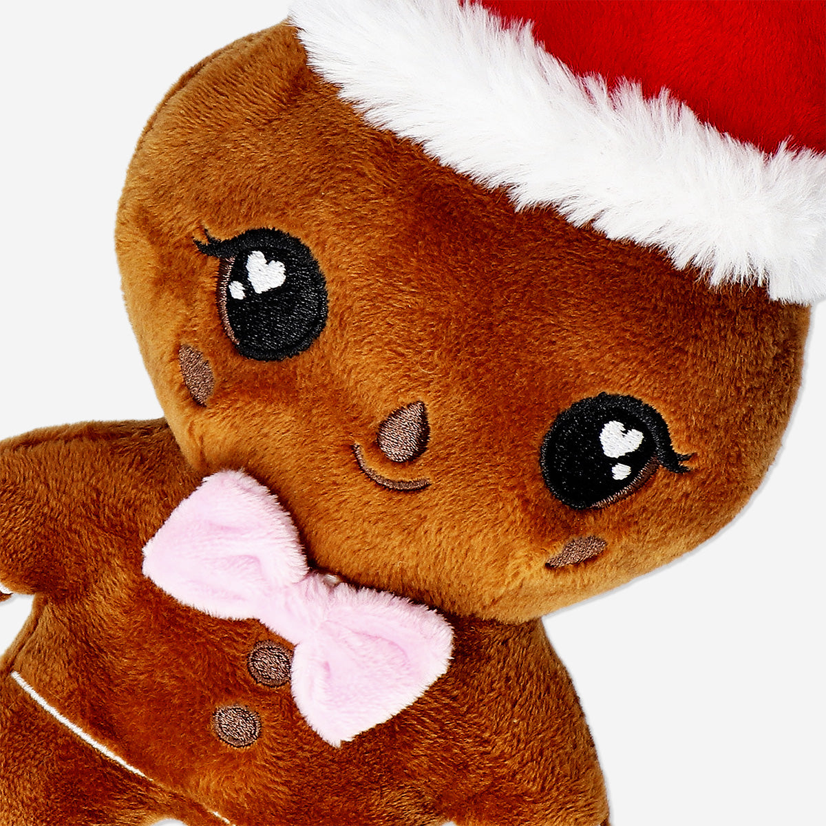 Peluş Kurabiye Adam, kırmızı Noel Baba şapkası ve pembe papyonuyla kış mevsimine sevimli ve eğlenceli bir dokunuş katar. Zencefilli kurabiye görünümüyle bu tatlı oyuncak, yılbaşı süslemelerine sıcaklık ve nostaljik bir hava getirir. Nakış detaylarıyla özenle tasarlanan yüz ifadesi, her görenin kalbini ısıtır. Bu minik dost, hem dekorasyonlarda hem de oyun zamanlarında tatlı bir eşlikçidir.