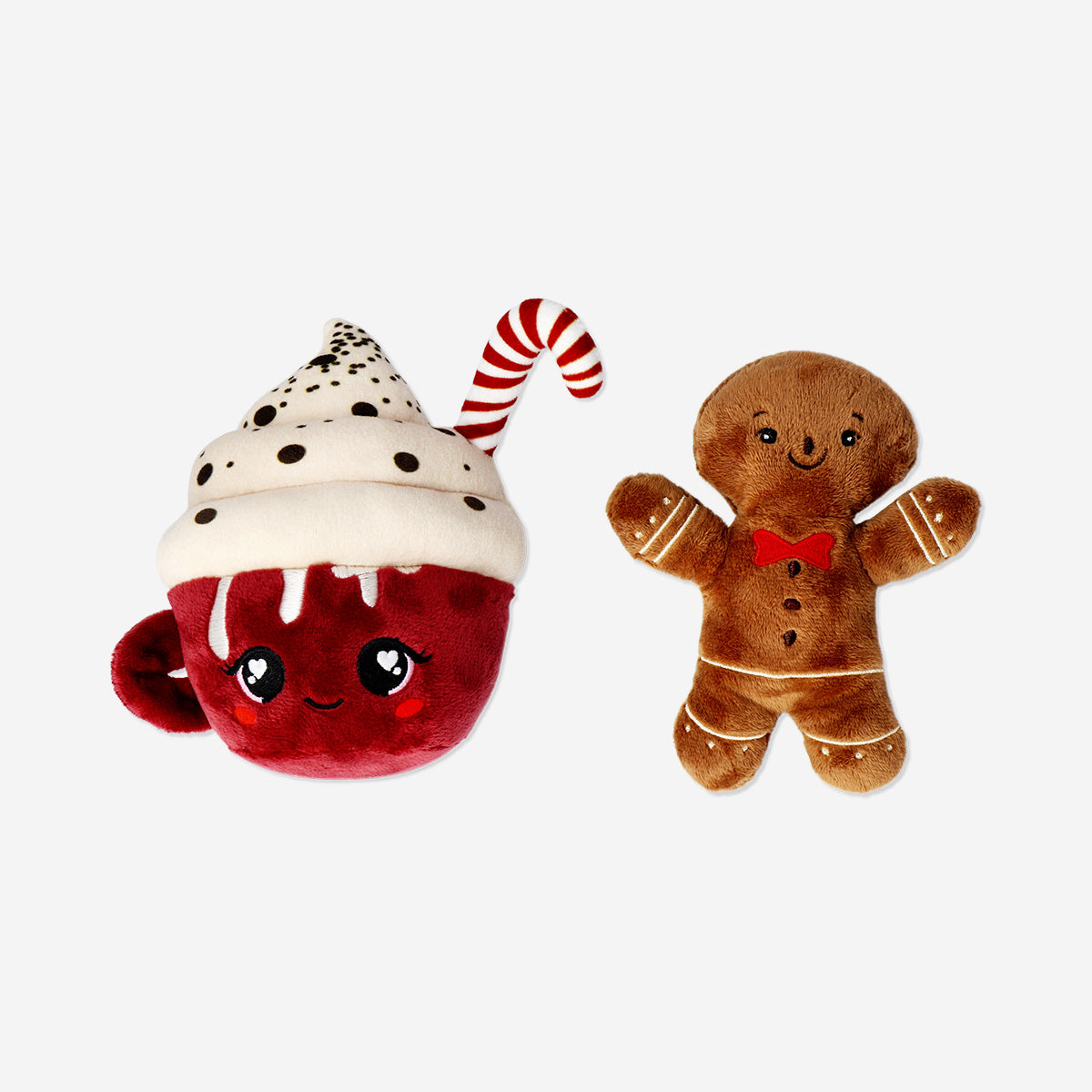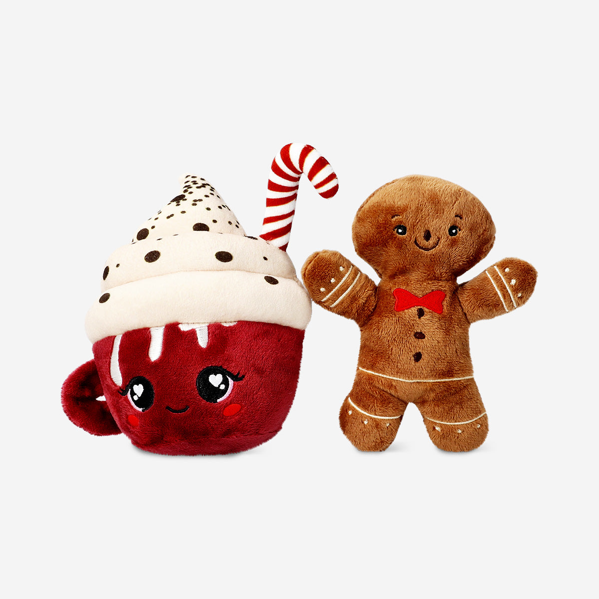 Peluş Kurabiye Adam ve Sıcak Çikolata seti, şeker kamışı, krem şanti ve şekerleme detaylarıyla yılbaşı tatlılığını evinize getirir. Gülümseyen kurabiye adam ve sıcak çikolata fincanı, sevimli ve eğlenceli tasarımıyla kış günlerine mutluluk katar. Yumuşacık dokusu ve canlı renkleriyle hem çocuklar hem de koleksiyon meraklıları için göz alıcı bir parçadır. Tatil havasını yansıtan bu ikili, sıcaklık ve neşeyi her köşeye taşır.