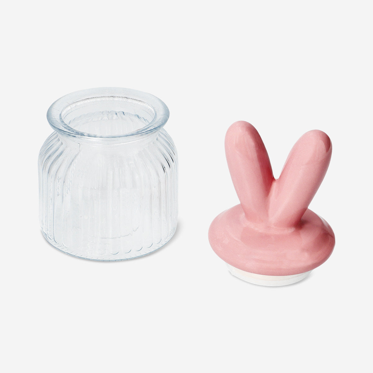 Pembe Kulaklı Tavşan Detaylı Cam Kavanoz