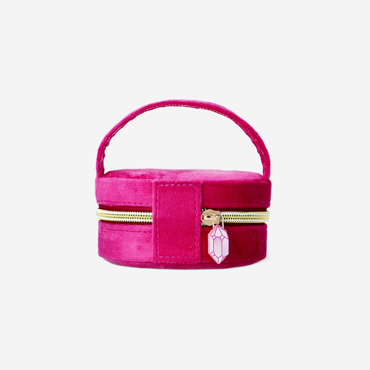 Fermuarlı kapatma özelliği, takılarınızın güvenli bir şekilde saklanmasını sağlarken, kullanışlı sapı taşıma kolaylığı sunar. Parlak pembe rengi ve yuvarlak formuyla dekoratif bir görünüm kazandırarak makyaj masanıza neşeli bir detay ekler. Günlük kullanım ya da seyahat için mükemmel olan Pembe Yuvarlak Takı Kutusu, değerli eşyalarınızı düzenli tutarken tarzınızı da yansıtır.