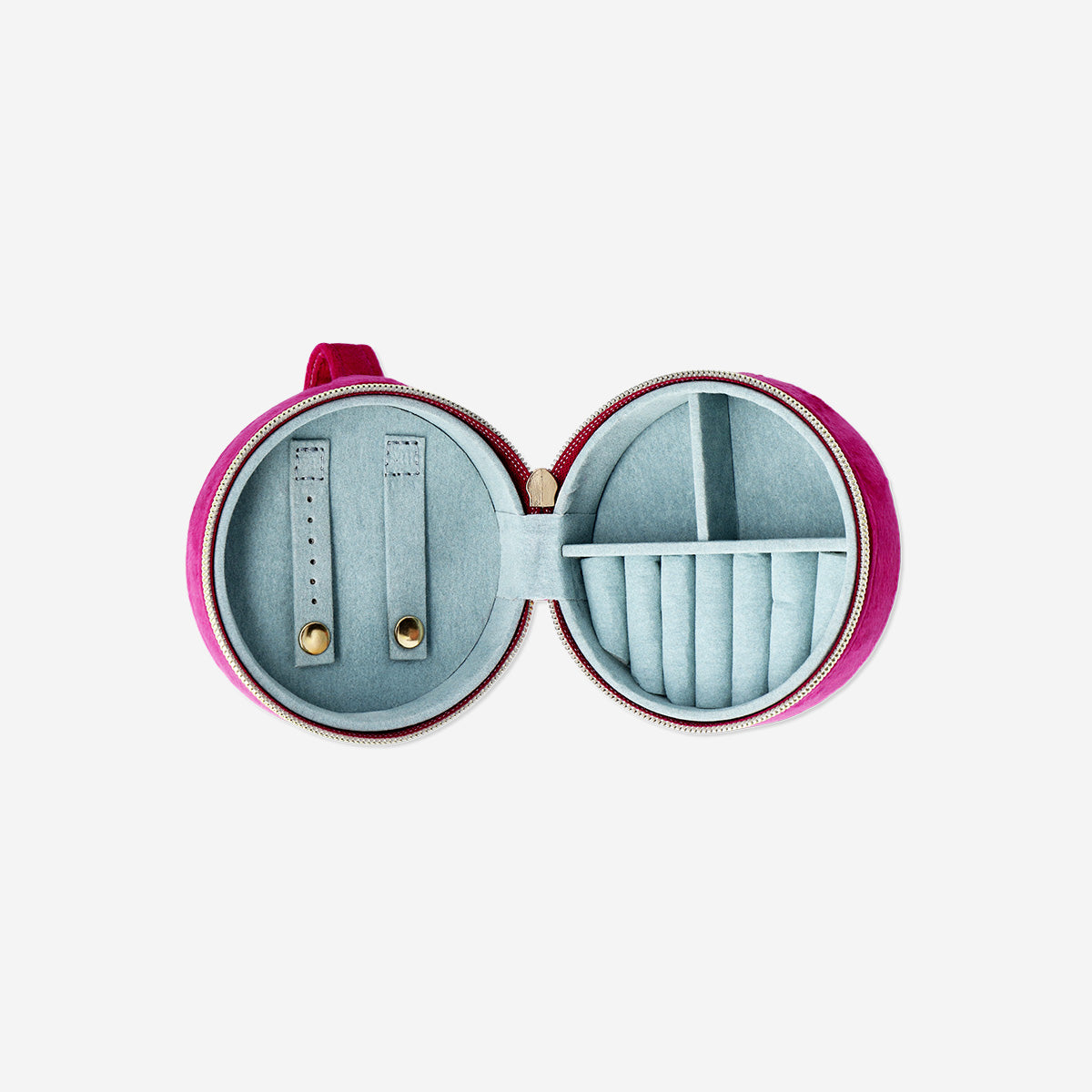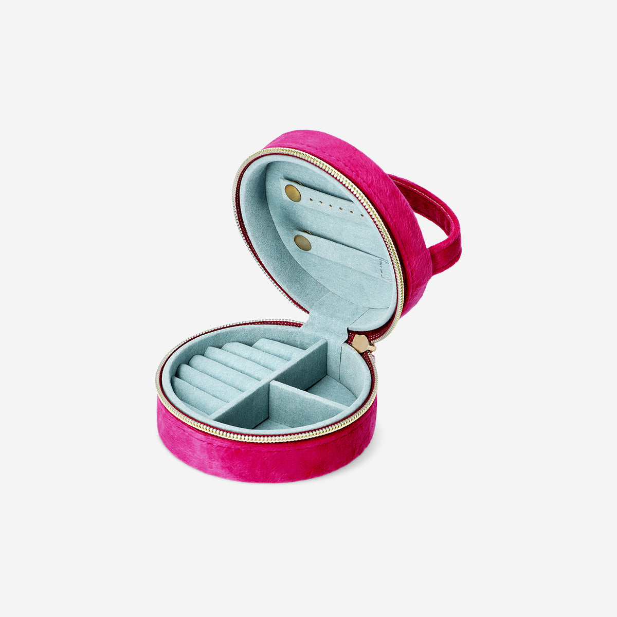 Pembe Yuvarlak Takı Kutusu, şık ve işlevsel tasarımıyla takılarınızı güvenli ve düzenli bir şekilde saklamanız için ideal bir çözümdür. 10,1 x 5 cm ölçülerindeki kompakt boyutu sayesinde hem evde kullanıma uygundur hem de seyahatlerde kolayca yanınıza alınabilir. Yumuşak kadife dış yüzeyi zarif bir dokunuş katarken, iç kısmındaki düzenli bölmeler yüzük, küpe ve küçük aksesuarlarınızı ayrı ayrı korur.