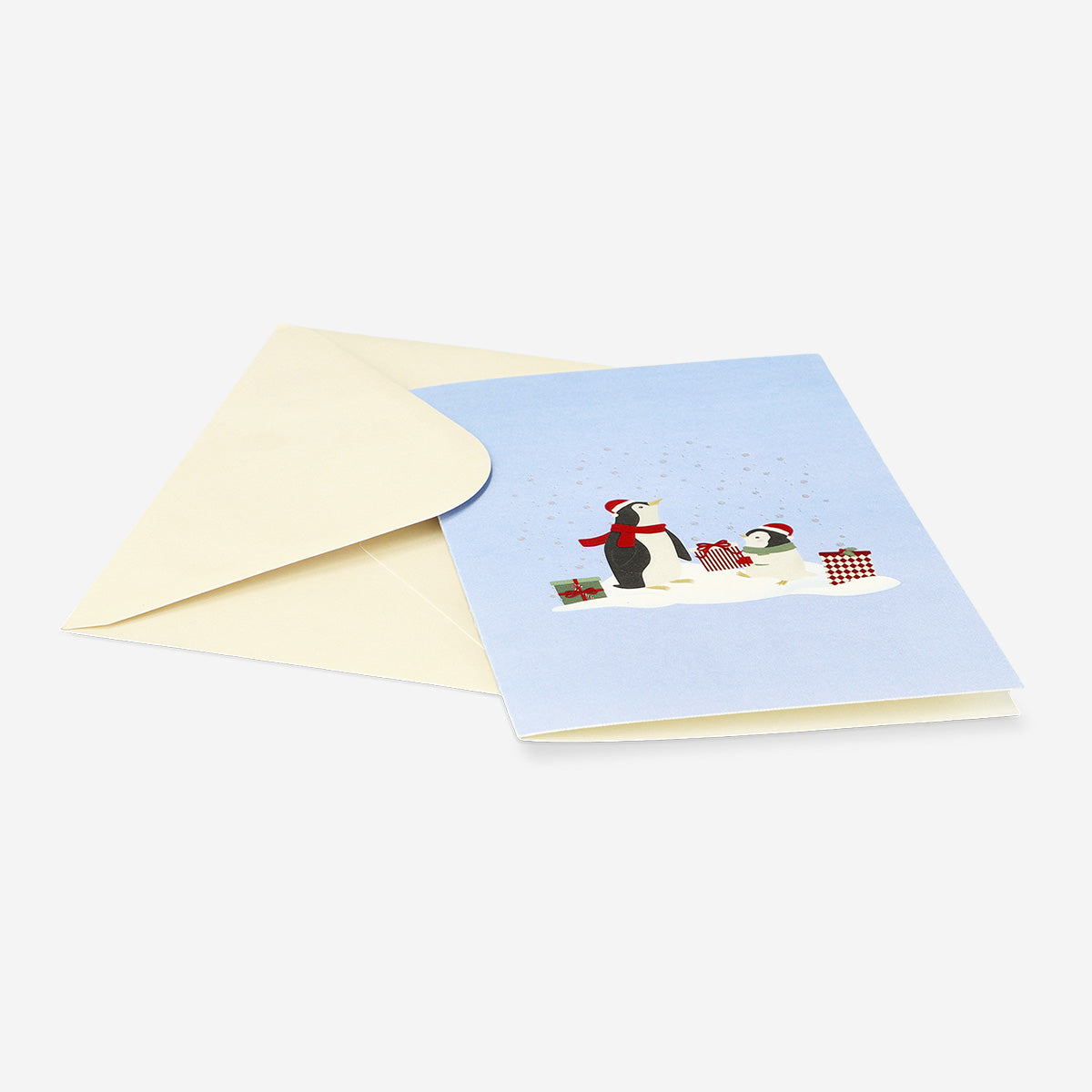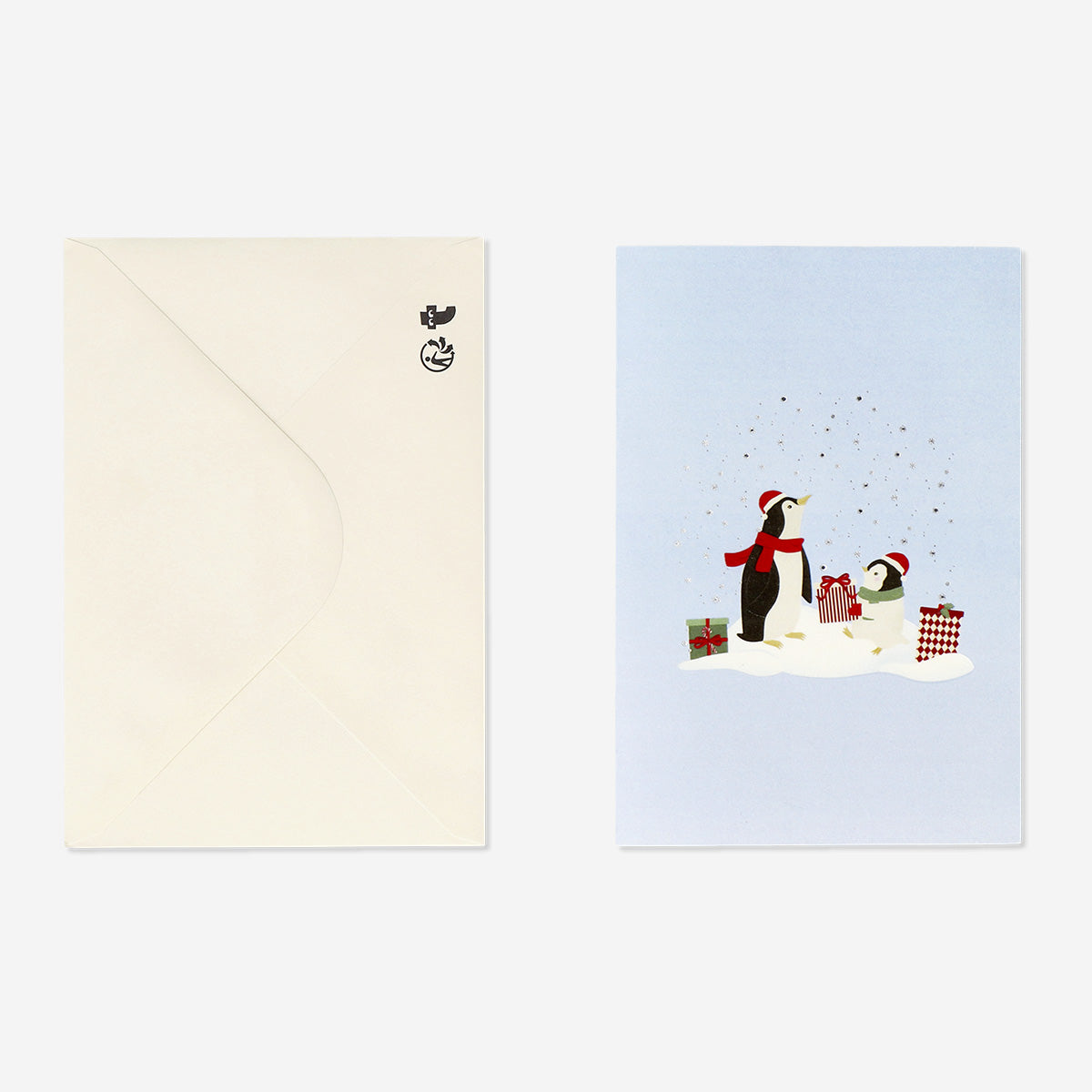 11,5 x 17 x 0,1 cm boyutlarındaki Penguen Desenli Yılbaşı Tebrik Kartı, uyumlu zarfıyla birlikte sunulur ve kişisel mesajlarınızı eklemek için geniş alan sağlar. Aile, arkadaşlar veya sevdiklerinize göndermek için ideal olan bu kart, Noel dileklerinizi şirin bir şekilde iletir. İster ağacın altına bırakın ister posta yoluyla gönderin, bu kart kutlamalara içten bir ışıltı katacaktır.
