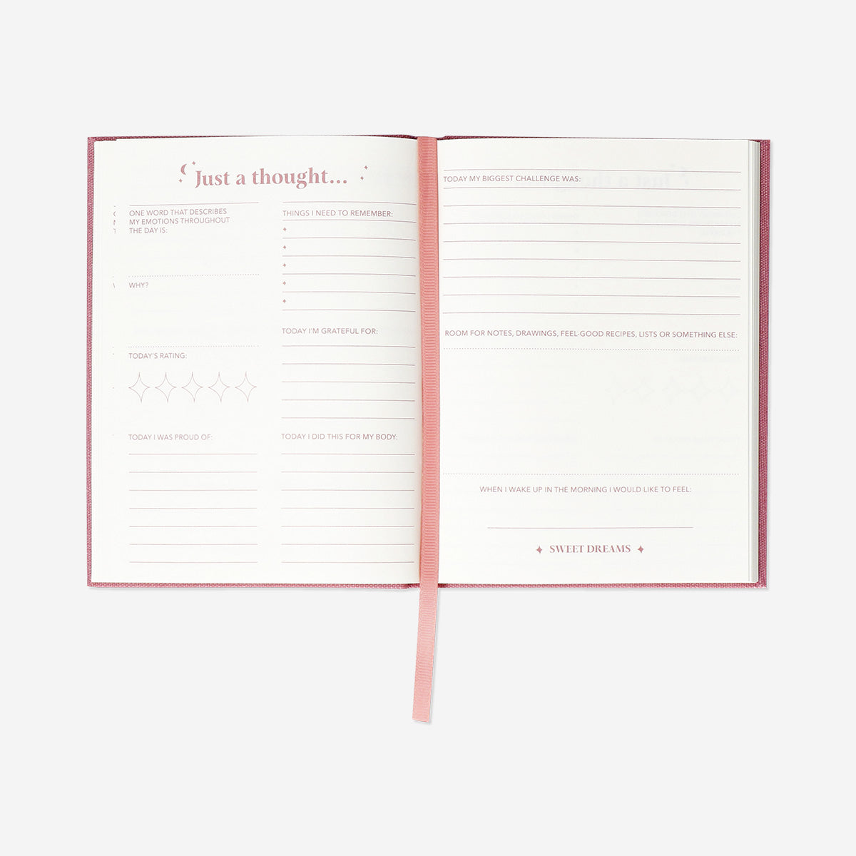 Her günün sonunda sakinleşmenize ve düşüncelerinizi düzenlemenize yardımcı olacak Uyku Öncesi Günlüğü, rahatlatıcı bir akşam rutini oluşturmak için özel olarak tasarlanmıştır. Derin kırmızı tonlarında yumuşak keten kapak ile kaplanan bu günlük, günün yorgunluğunu geride bırakıp duygu, düşünce ve minnettarlık anlarınızı not almanız için mükemmel bir alan sunar.