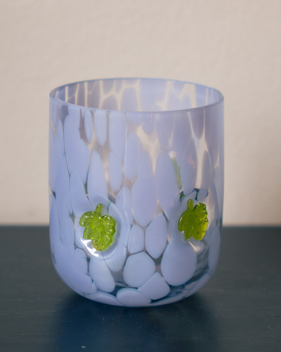 Yaprak Desenli Mor Cam Bardak, sonbaharın büyüsünü sofranıza taşıyan zarif bir tasarıma sahiptir. Mor noktalar ve kabartmalı yeşil yaprak detaylarıyla süslenmiş olan bu bardak, 320 ml kapasitesiyle günlük içecekler veya özel anlar için idealdir. 8 x 9,5 cm boyutlarındaki ölçüleri, hem işlevsel kullanım hem de dekoratif bir görünüm sunar.
