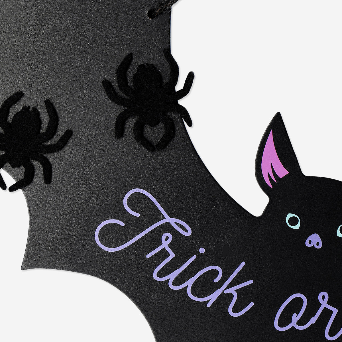 Yarasa Şeklinde Kapı Süsü, Cadılar Bayramı kutlamalarınız için kapınıza eğlenceli ve ürkütücü bir dokunuş katar. Kanatları açık siyah yarasa formunda tasarlanan bu süs, detaylı örümcek motifleriyle zenginleştirilmiştir. Ortasında mor harflerle yazılı “trick or treat” mesajı, misafirlerinizi daha kapıdan içeri girmeden Halloween ruhuna davet eder. 35 x 15,5 cm boyutları sayesinde fazla yer kaplamazken, göz alıcı tasarımıyla dikkat çeker.