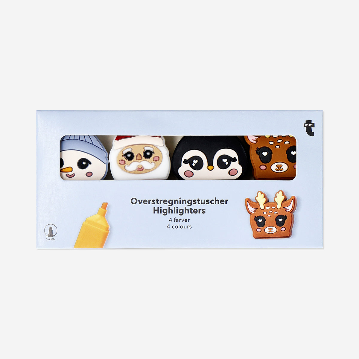 Kırtasiye koleksiyonuna eğlenceli bir dokunuş kat! Yılbaşı Temalı Fosforlu Kalem Seti, her biri sevimli bir karakterle süslenmiş tasarımıyla dikkat çeker. Set; penguen, kardan adam, zencefilli kurabiye ve Noel Baba figürlerinden oluşur. Renkli tasarımlarıyla notlarını, ajandalarını ve yapılacaklar listeni keyifle renklendirmeni sağlar. Her bir kalem yaklaşık 2,8 x 6,4 x 4 cm ölçülerindedir ve dayanıklı plastikten üretilmiştir.