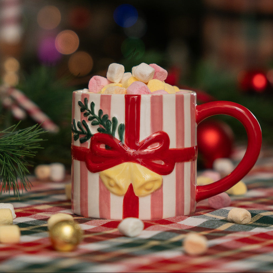Yılbaşı Temalı Hediye Şeklinde Kupa, sarılı bir paketi andıran kabartmalı detaylarıyla her yudumda sevimli ve eğlenceli bir atmosfer yaratır. Canlı renkleri ve göz alıcı kırmızı kulpu, yılbaşı ruhunu sofralarınıza taşırken içeceklerinize şenlikli bir dokunuş katar. 9 x 8,8 x 13,7 cm boyutlarındaki bu kupa, 350 ml kapasitesiyle kahve, çay veya sıcak çikolata keyfi için mükemmeldir. Günün her anına sıcaklık ve neşe katmak için ideal bir seçimdir.