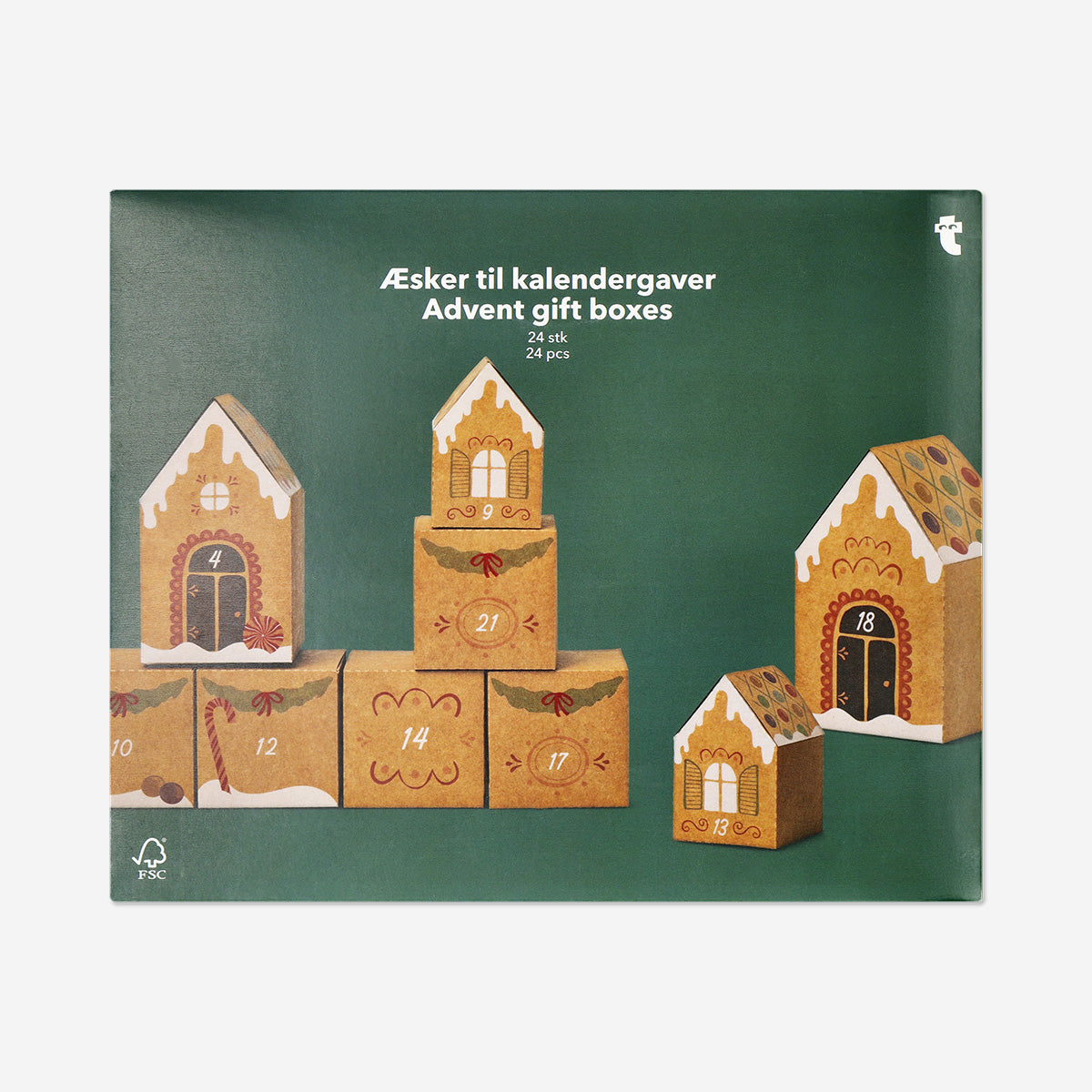 Set, 8 küçük, 12 orta ve 4 büyük kutu içerir; tüm kutular kolay saklama ve monte etme için düz paketlenmiş şekilde gelir. Kahverengi kağıttan üretilen kutular, sevimli ve mevsime özel baskılarla dekore edilmiştir. Bu set, Aralık ayının her sabahına neşe katacak düşünceli ve eğlenceli bir hediye çözümü sunar.